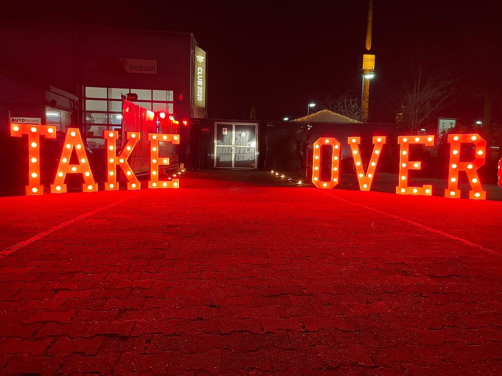 Schon beim Betreten wurden die Gäste von einem imposanten BDSM TAKEOVER-Schriftzug und zwei großen Feuerschalen begrüßt. Den Bodenkerzen folgend, erwartete die Gäste eine stimmungsvolle Dekoration „Im Zeichen des Feuers“, mit Fackeln und Ethanol-Kaminen, die den Club in ein ganz neues, geheimnisvolles Licht tauchten.