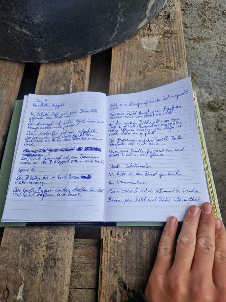 Oder die Hektik, wenn ich eine Aufgabe nicht direkt lösen konnte… So viele Gedanken. So viele schöne Momente. Das Sitzen auf dem wackeligen, selbstgebauten Stuhl. Die dreckigen Hände, nachdem ich in den Boden gemalt hatte. So viele tolle und spannende Erlebnisse – und eben auch gestresste Phasen, wie an Tag sechs.
