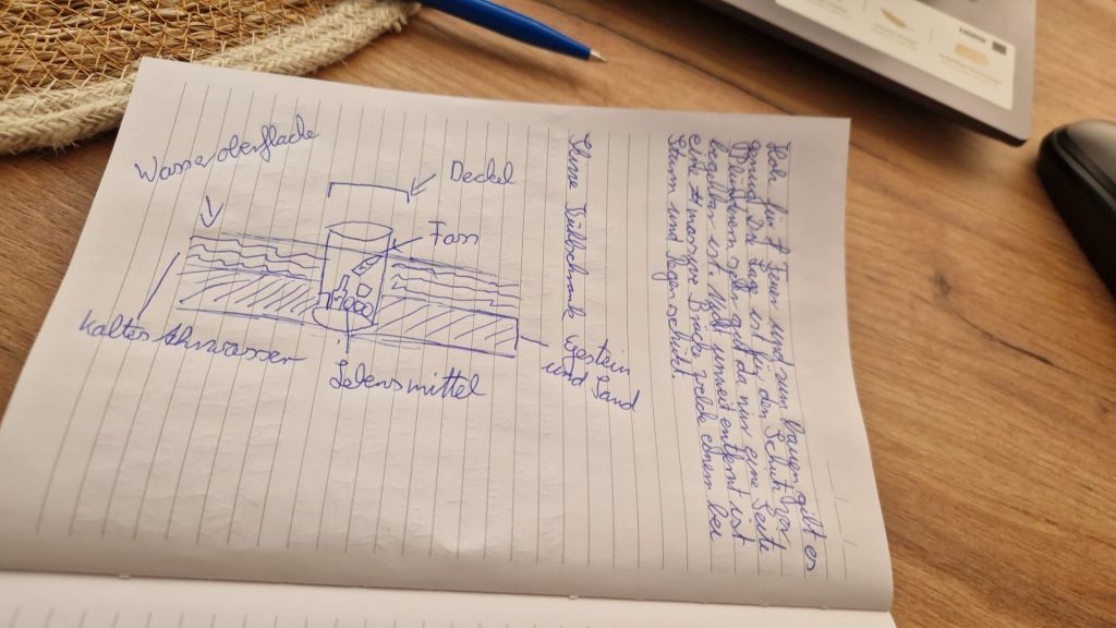 Weiter im Text war die Aufgabe die Dokumentationsstätte des Regierungsbunkers zu finden, aber ohne Navi, ohne Internet. Glücklicherweise bin ich hier schon einige Male an dem Schild vorbei gefahren, brauchte hier nicht viel zu recherchieren, der Standort war mir bewusst. Nun musste ich dort aber noch hin, zusätzlich eine Karte zeichnen, die den Weg beschreibt, dorthin zu kommen. Auch diese Zeichnung hatte in dem Notizbuch zu erfolgen.